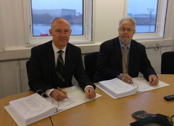 Barry Webster – Sales Manager – Ship Air Integration Division of AGI can be seen with Max Campbell –Supply Chain Lead of BAE Systems Maritime signing the Type 26 contracts above.